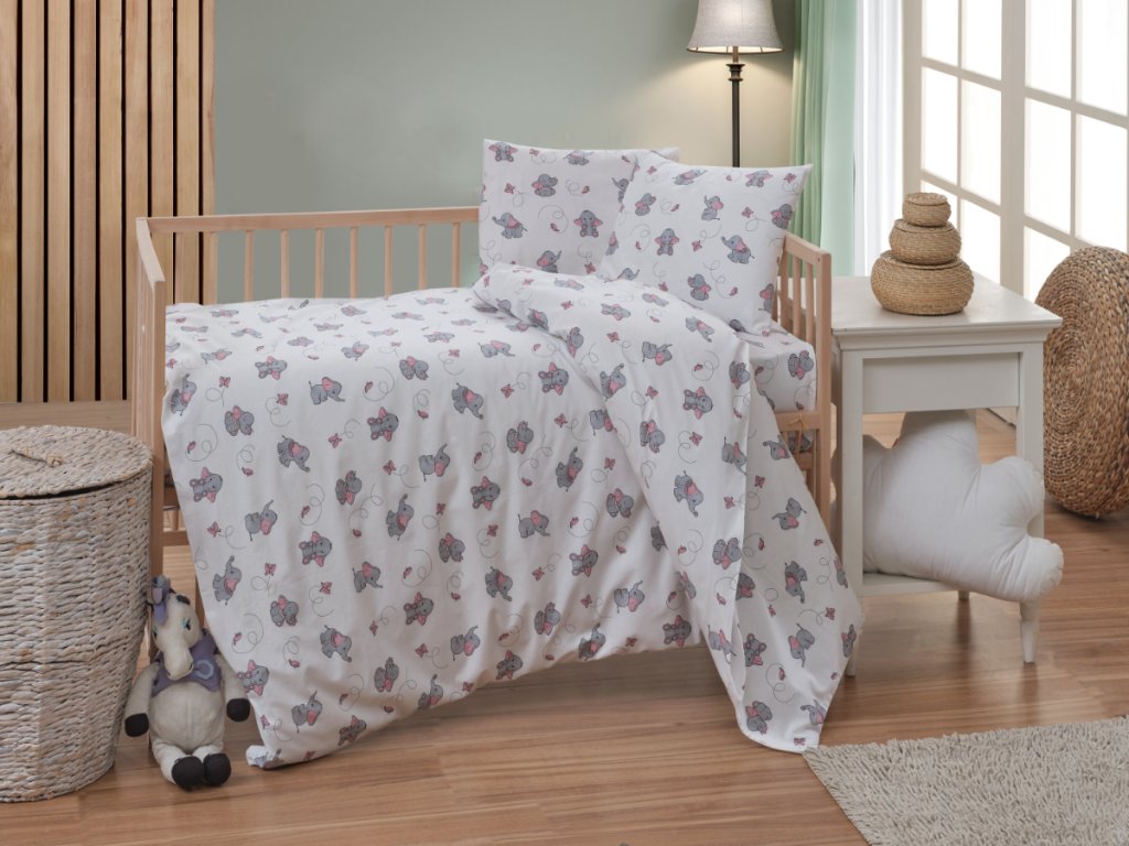 Bavlněné dětské povlečení 140x200, 70x90cm Slůně šedé
