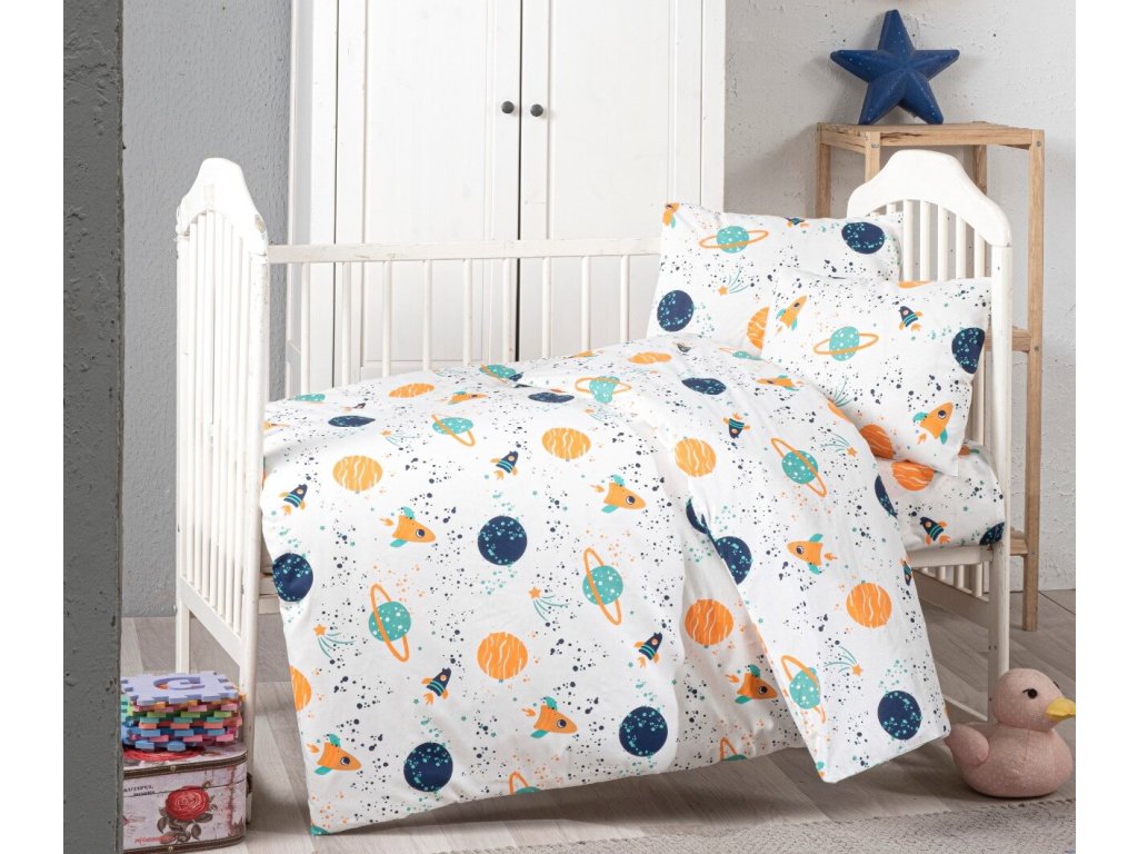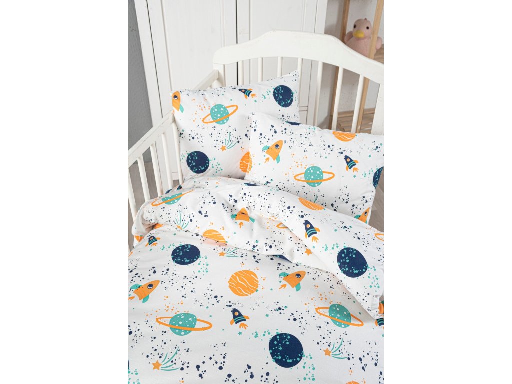 Bavlněné dětské povlečení do malé postýlky 90x135, 45x60 cm vesmír