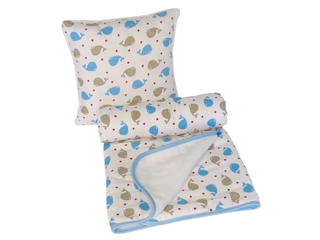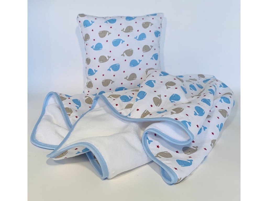 Dětská sada pro batolata Velryba modrá 35x35, 90x100 cm