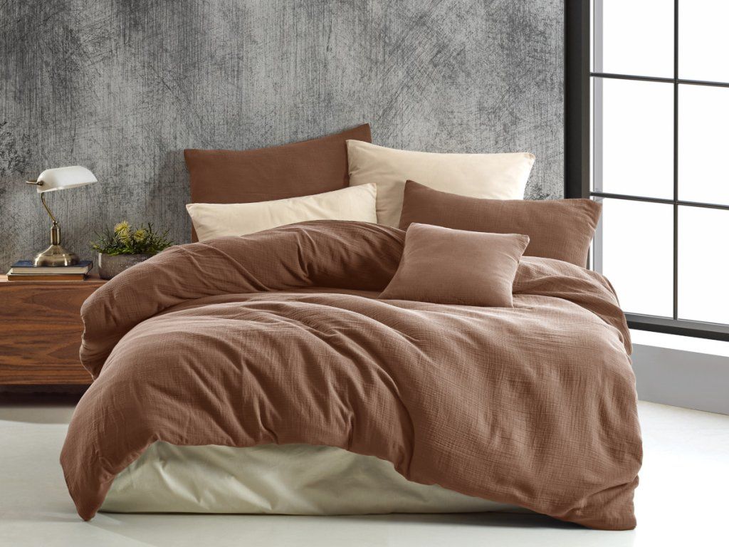 Francouzské mušelínové povlečení hnědé