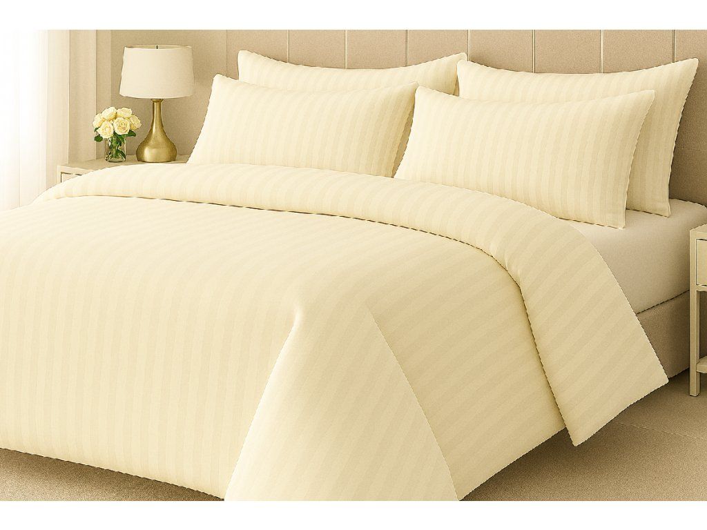 Hotelové povlečení 140x220, 70x90cm Atlas gradl smetanový - česaný 145g/m2, proužek 2cm