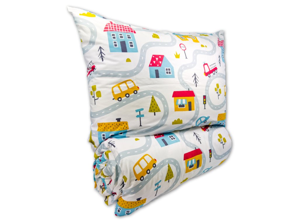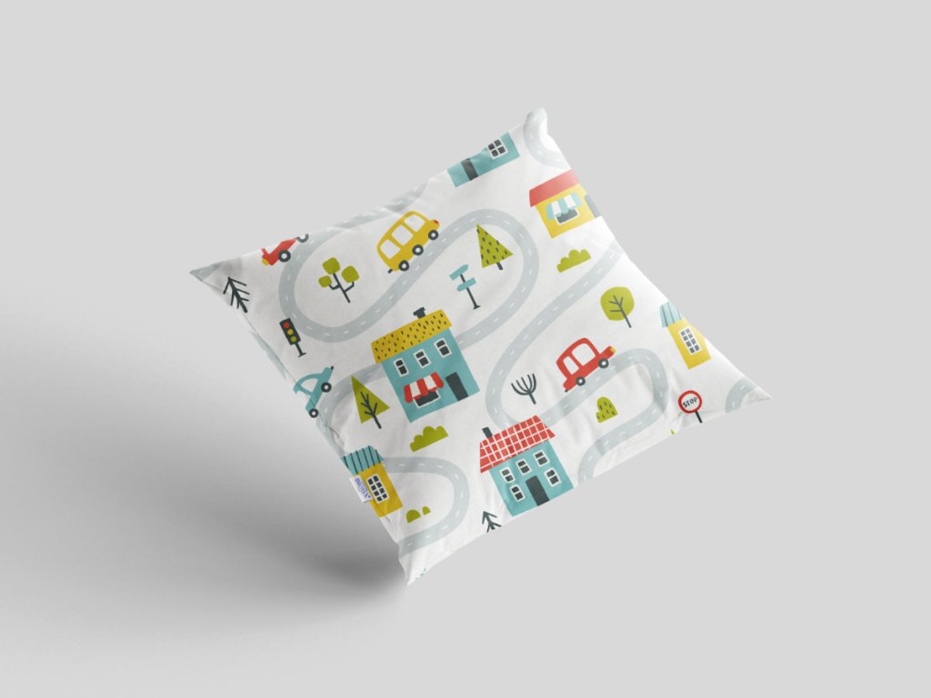 Krepový povlak na polštář 40x40 cm s dětským motivem městečko
