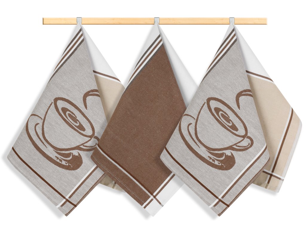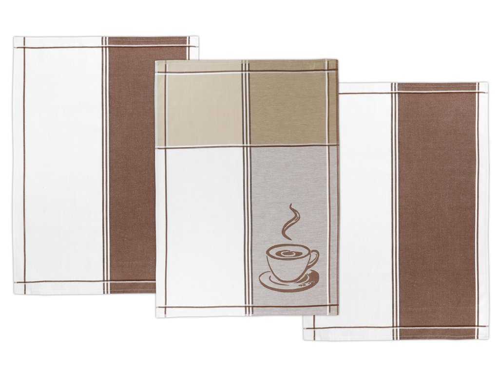 Kuchyňské utěrky jsou vyrobeny ze 100% bavlny o plošné gramáži 240g/m2. Jsou dostatečně velké a velmi dobře savé, v různých barevných variacích a dezénech. 100% bavlna zajišťuje dostatečnou savost použitého materiálu. Balení obsahuje tři kusy utěrek, barevnost utěrek může být odlišná oproti vyobrazení.