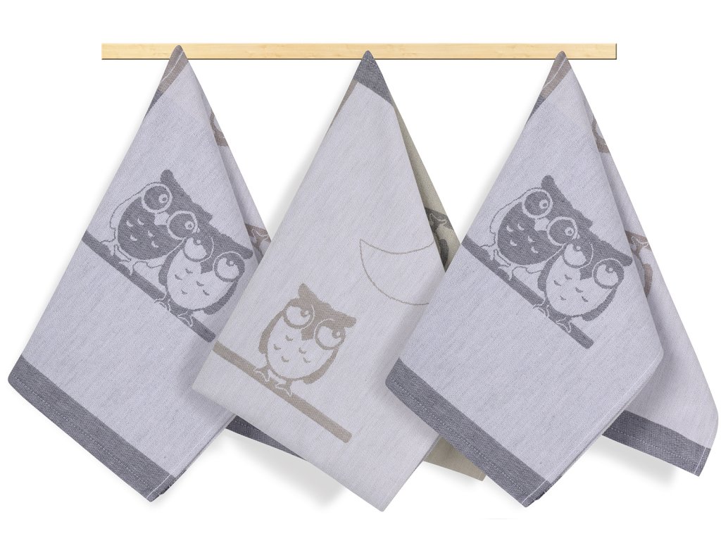 Kuchyňské utěrky jsou vyrobeny ze 100% bavlny o plošné gramáži 240g/m2. Jsou dostatečně velké a velmi dobře savé, v různých barevných variacích a dezénech. 100% bavlna zajišťuje dostatečnou savost použitého materiálu. Balení obsahuje tři kusy utěrek, barevnost utěrek může být odlišná oproti vyobrazení.