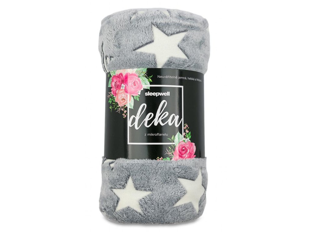 Mikroplyšová svítící deka Hvězdy šedé 150x200 cm