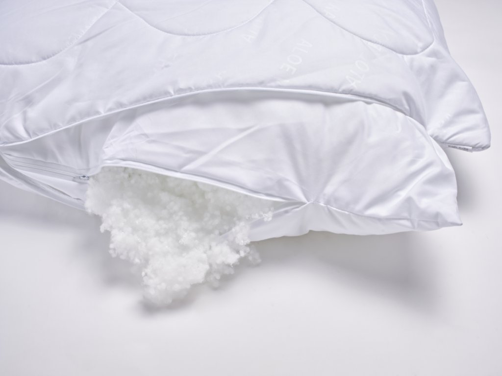 Tento polštář obsahuje vysoce kvalitní značkové kuličkové duté vlákno UNICO, které je určeno specielně pro výrobu protialergických polštářů. Polštáře se díky těmto kvalitním kuličkám dají snadno naklepat a nemění tvar. Kuličkové duté vlákno je uvnitř samostatného povlaku se zipem, který je vložen do prošitého korpusu také se zipem. Jedná se o velmi praktický výrobek, kdy je možnost samostatného vyprání korpusu bez výplně, která se díky povlaku navíc, snadno z korpusu polštáře vyjme. Oba povlaky jsou opatřeny zipovým uzávěrem, pro možnost doplnění či odebrání části výplně dle potřeby zákazníka. Povrchovým materiálem je 100% polyester - mikrovlákno s výtažky z rostliny Aloe Vera. Aloe Vera příznivě působí na lidskou pokožku, má schopnost zmírňovat bolesti kloubů a svalů. Během užívání postupně uvolňuje extrakty ze svých vláken, které mají výrazný antibakteriální efekt, tudíž bezpečně zaručí hubení bakterií a roztočů. Přispívá k uvolnění těla, relaxaci a ničím nerušenému klidnému spánku. Polštář je vhodný pro alergiky a astmatiky.