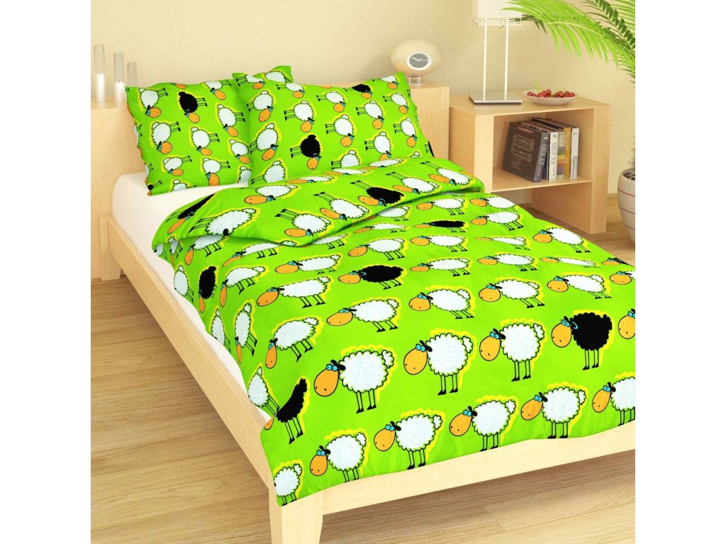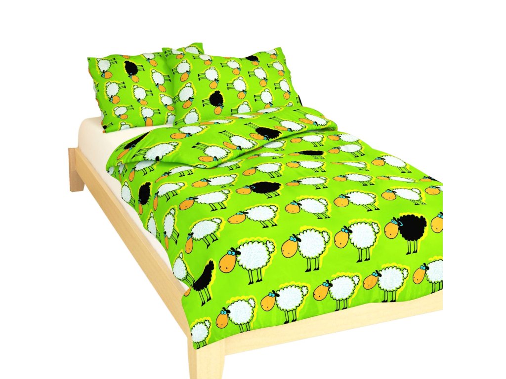 Povlečení bavlna do postýlky Stádo oveček zelené 90x130, 45x60 cm