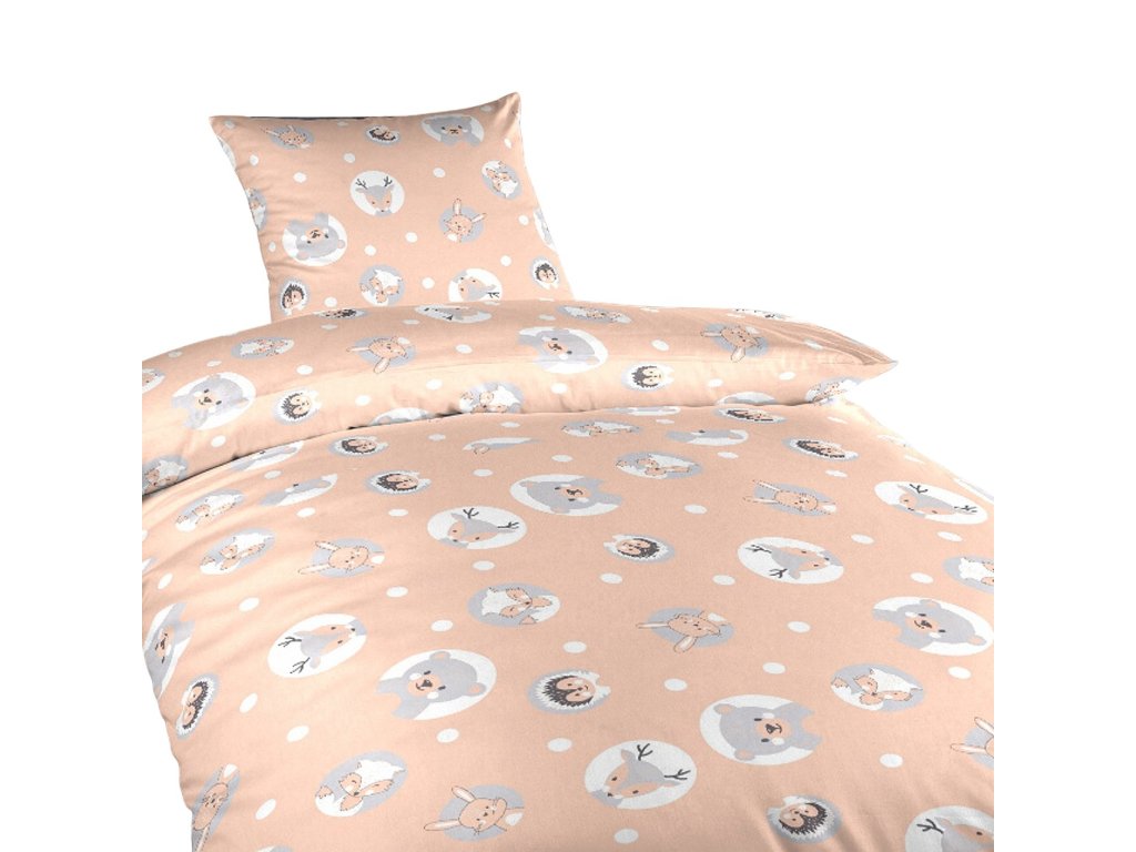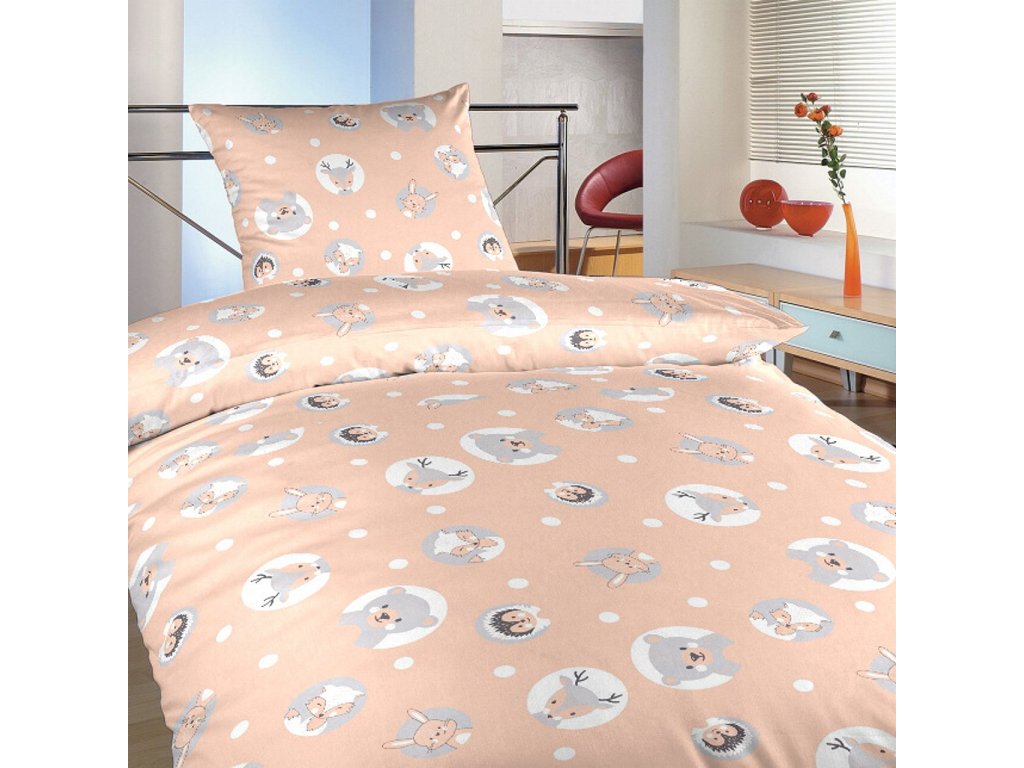 Povlečení bavlna do postýlky Zvířátka meruňková 90x130, 45x60 cm
