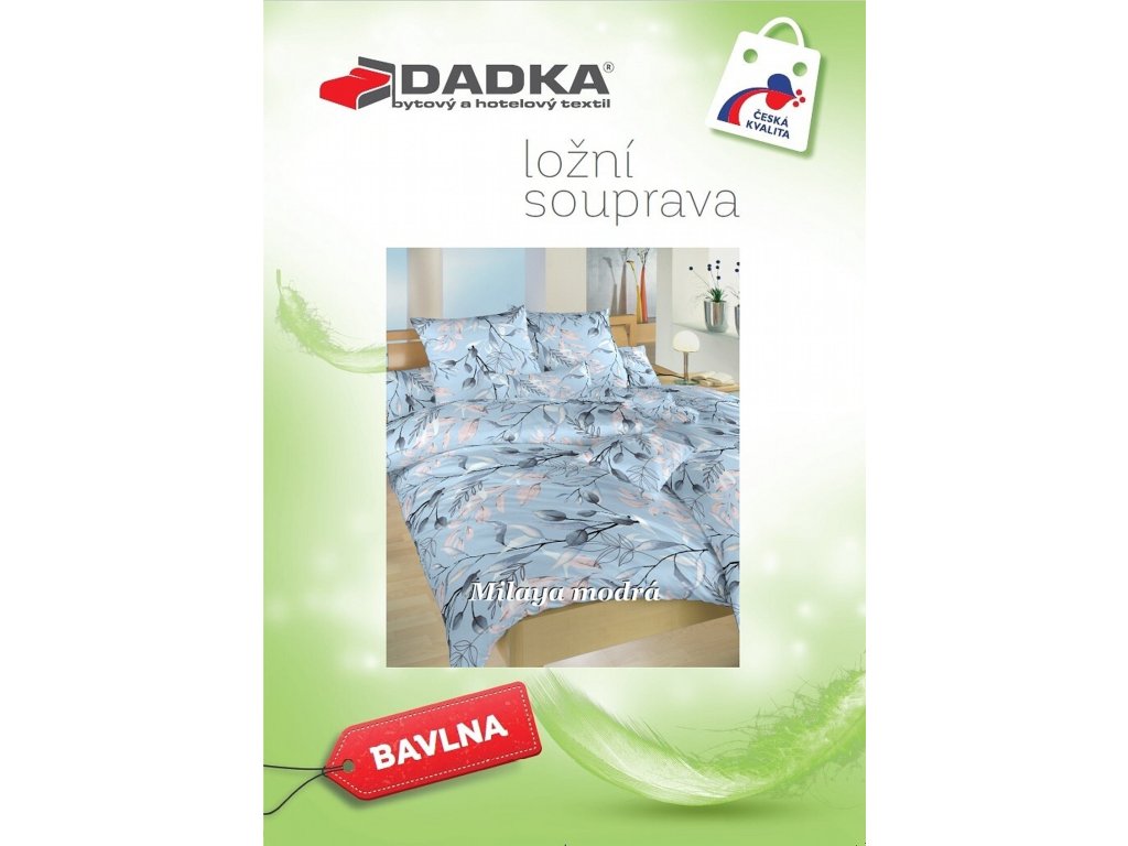 Elegantní ložní prádlo s přírodním motivem Milaya modrá v odstínech modré, šedé a růžové na světle modrém podkladu přináší do ložnice jemnost a svěžest. Vzor listů a větviček působí vzdušně a harmonicky. Povlečení doporučujeme kombinovat s prostěradly v barvě královsky modrá, denim, banánová, bílá, béžová nebo tmavě šedá. Vyrobeno v České republice firmou .
