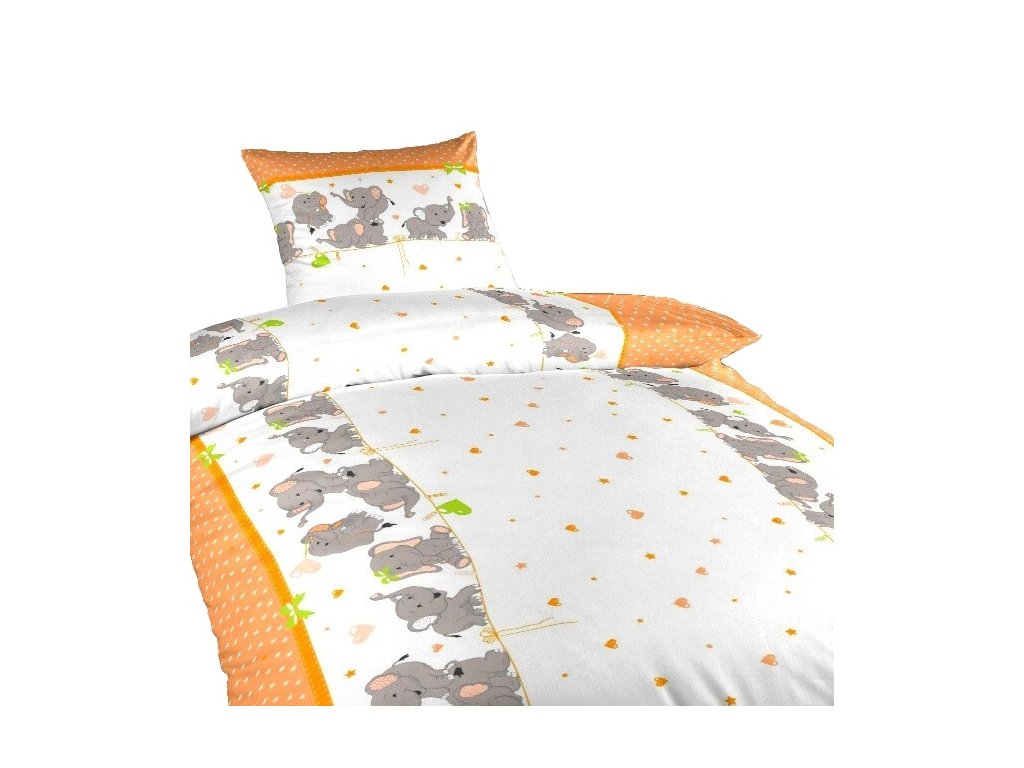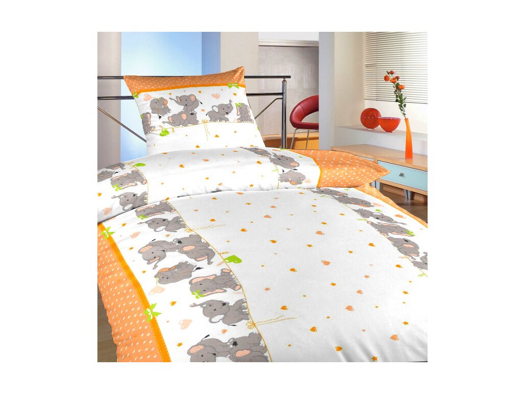 Povlečení bavlna Sloni oranžoví 140x200, 70x90 cm
