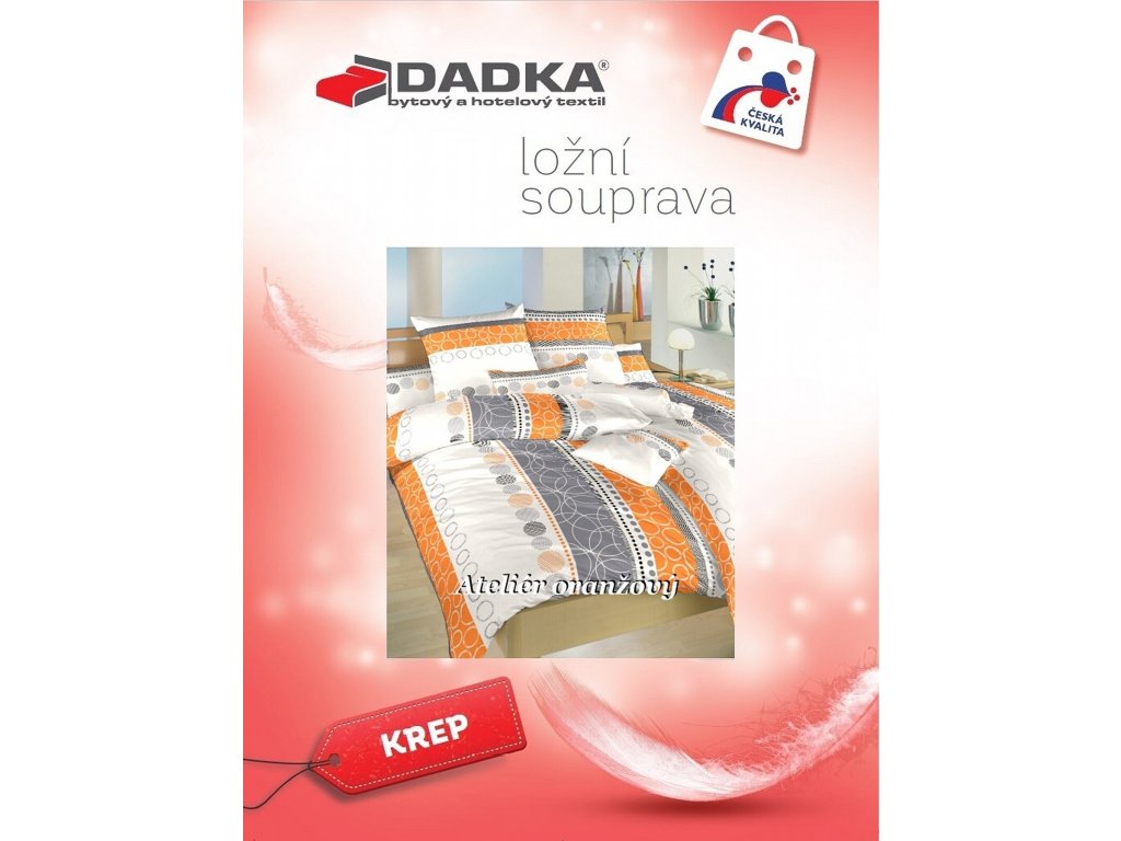 Moderní krepové povlečení Ateliér oranžový zaujme svým originálním vzorem s kruhovými motivy v odstínech oranžové, šedé a bílé. Tento design přináší do ložnice svěžest a energii. Skvěle ladí s prostěradly v barvě šedá, pomerančová, bílá nebo černá.
