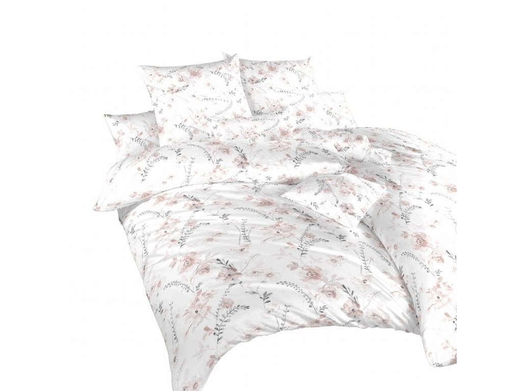 Povlečení krep Kvítí pudrové na bílém 220x200, 2x70x90 cm