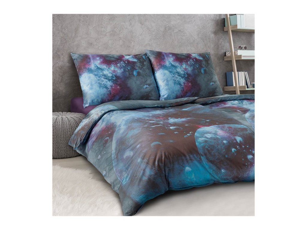 Povlečení satén Geon Vesmír šedomodrá 140x200, 70x90 cm