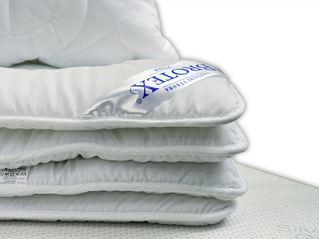 Dětská souprava Luxus obsahuje silnou zimní přikrývku o gramáži 450g/m2. Polštářek obsahuje protialergické kuličkové duté vlákno, které je určeno specielně pro výrobu protialergických polštářů. Polštáře se díky těmto kuličkám dají snadno naklepat a nemění tvar. Kuličkové vlákno je uvnitř prošitého korpusu, který je prošitý ( látka, rouno, netkaná textilie ). Netkaná textilie je velmi důležitým materiálem u polštářů. Hlavní funkcí tohoto materiálu je zabránění spojení rouna s kuličkovým vláknem. Polštář je opatřen zipovým uzávěrem, pro možnost doplnění či odebrání části výplně dle potřeby.