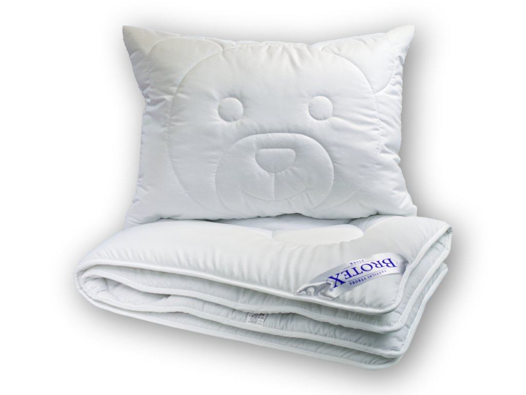 Tato lehká a nadýchaná dětská sada – přikrývka a polštář – je ideální volbou pro citlivé děti i malé alergiky. Výplň z kvalitního dutého polyesterového vlákna zajišťuje výbornou prodyšnost, optimální tepelný komfort a zároveň vysokou hygienu. Duté vlákno drží tvar, rychle schne a nepohlcuje prach ani roztoče. Originální prošití s motivem medvídka dodává polštářku i přikrývce hravý a přívětivý vzhled, který potěší každé dítě a zpříjemní mu usínání.Výhody: vhodné pro alergiky a astmatiky, jemný, příjemný povrch šetrný k dětské pokožce, lehká, měkká a dobře hřejivá přikrývka, polštář s pevnějším, ale stále jemným objemem, snadná údržba – lze prát v pračce na vyšší teplotu, duté vlákno s dlouhou životností a stálým objemem, hravé prošití medvídka pro hezčí dětský pokojíčekTato sada je skvělou volbou pro každodenní pohodlný spánek a maximální hygienu. Hodí se jak do postýlky, tak do dětského pokojíčku ve školce či na cesty.Doplňkové parametry